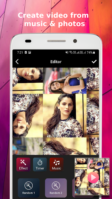 Photo Slideshow Video Maker with Music editor is a powerful photo to video and slideshow composer. It can be used to make a different types of stylish clips with different transition styles and with ear sooting music in the background.