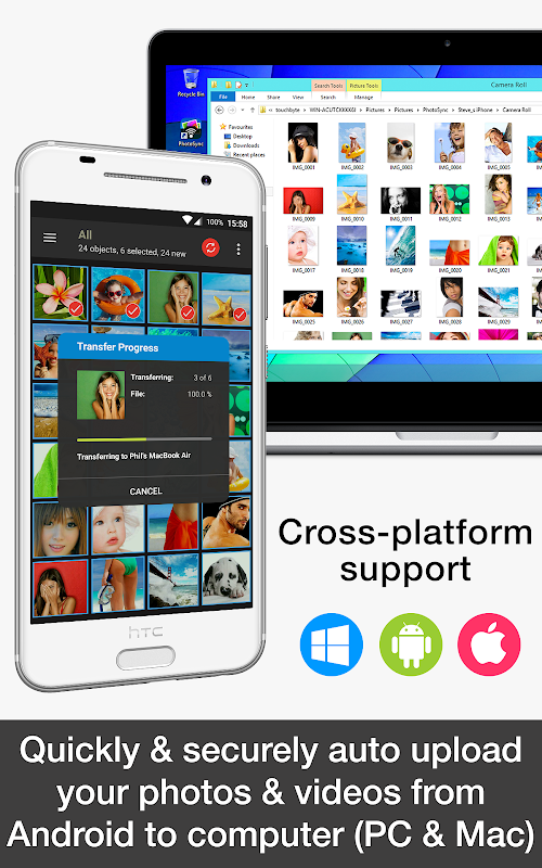 • Veilige automatische back-up van uw foto's en video's rechtstreeks vanaf uw Android-telefoon / -tablet naar computer (pc en Mac) via WiFi of draagbare WiFi-hotspot