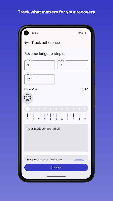 Met PhysiApp kunt u veilig rapporteren aan uw fysiotherapeut of chiropractor hoeveel u van een bepaalde oefening hebt voltooid en of u pijn voelde.