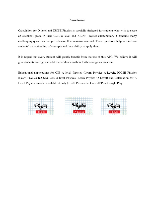 Physics Calculations is ontworpen voor studenten voor O-Level & IGCSE Physics