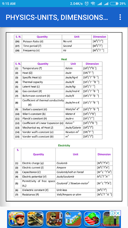 PHYSICS-UNITS, DIMENSIONS AND ERROR-FORMULA EBOOK APK -informatie