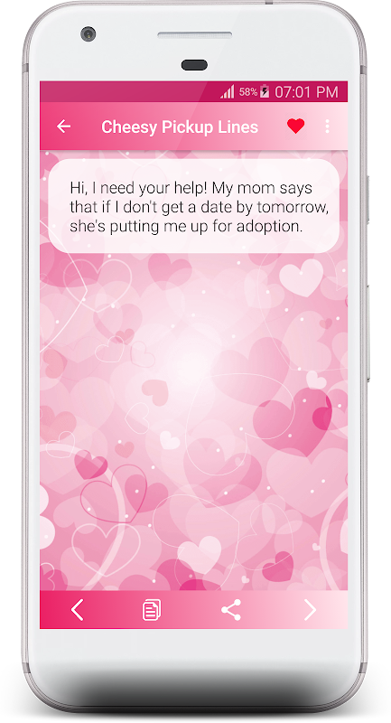 Met Pick-Up-Lines heb je snel toegang tot een verzameling van 1000 pick-up lines met één tik op de knop. Je bent op elk moment klaar voor actie.