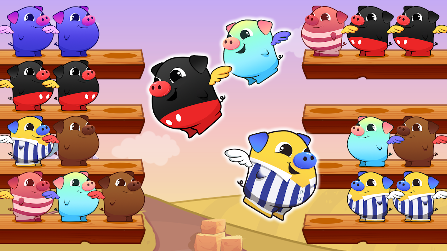 Pig Sort Puzzle is een erg leuk en uitdagend varkenssorteerspel. Probeer de varkens op de tak te rangschikken totdat ze allemaal van hetzelfde type zijn en wegvliegen. Met kleurrijke varkens is dit het perfecte spel om je hersenen te stimuleren en je elke dag te helpen ontspannen.