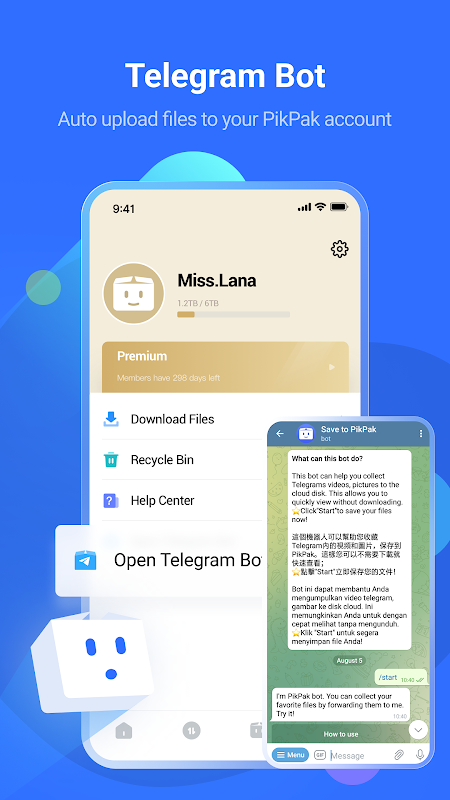 Je kunt favoriete bestanden doorsturen naar PikPak via Telegram-bot, of ze opslaan via systeemdeling; Vind ze dan in PikPak.