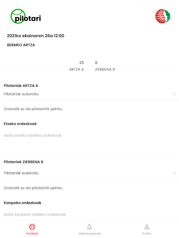 Met deze applicatie kunnen clubs en juryleden van de Baskische Pelota-vereniging van Alava, de Baskische Pelota-federatie van Bizkaia, de Baskische Pelota-federatie van Gipuzkoa en de Baskische Pelota-federatie van Baskenland verschillende operaties uitvoeren.
