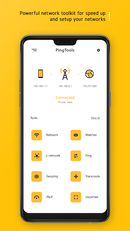 Ping Tools - Network Utilities is a powerful network toolkit for speed up and setup networks. It allows quick detecting any computer network problems, IP address detection and boosting network performance.