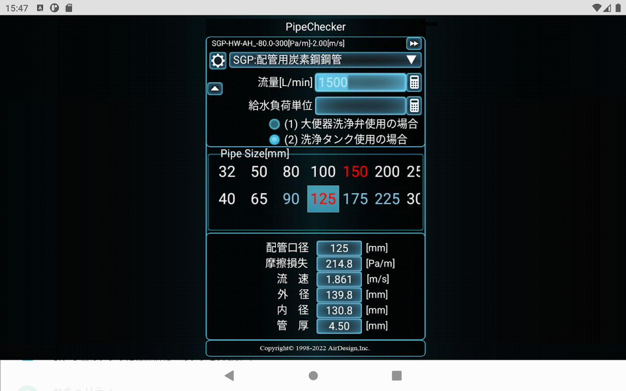 Met een simpele handeling kunt u de optimale leidingmaat (drukleiding) selecteren.