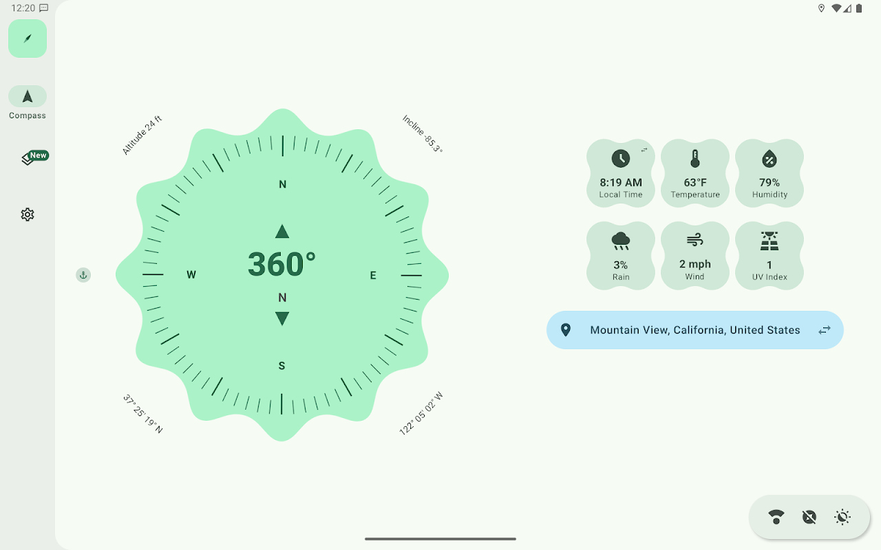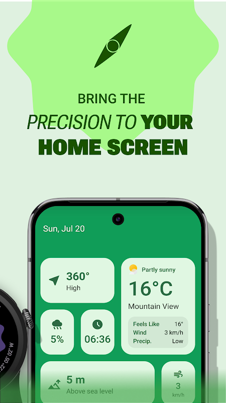 Jouw kompas voor telefoon en horloge. Material 3-ontwerp met weer, niveau en hoogte.