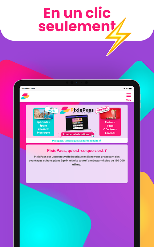 PixiePass is de mobiele applicatie ontworpen voor medewerkers van ADMIN CSE-klantbedrijven, waardoor u snel en eenvoudig toegang krijgt tot al uw CSE-voordelen. Ontdek dankzij PixiePass exclusieve ticketverkoop en aanbiedingen die speciaal voor u zijn geselecteerd, soms beschikbaar afhankelijk van uw locatie. De app biedt een breed scala aan kortingen op themaparken, bioscopen, shows, sportevenementen, reizen, vrije tijd en nog veel meer. Met een moderne en intuïtieve interface kunt u eenvoudig door de verschillende aanbiedingscategorieën navigeren, uw tickets rechtstreeks naar uw smartphone downloaden en uw voorkeuren aan uw favorieten toevoegen. Profiteer ook van de geolocatiefunctionaliteit om de beste deals bij u in de buurt te vinden. Blijf op de hoogte met meldingen, zodat je geen nieuws of exclusieve promoties mist. Veilig en praktisch, PixiePass vergezelt je overal en stelt je zelfs in staat je gedownloade tickets offline te bekijken. De toegang is voorbehouden aan medewerkers van ADMIN CSE-partnerbedrijven, met een verbinding via uw identificatiegegevens verstrekt door uw werkgever of de CSE-beheerder. Vereenvoudig uw vrijetijdsactiviteiten en krijg toegang tot unieke voordelen met PixiePass, de essentiële applicatie om optimaal te profiteren van uw CSE-voordelen.
