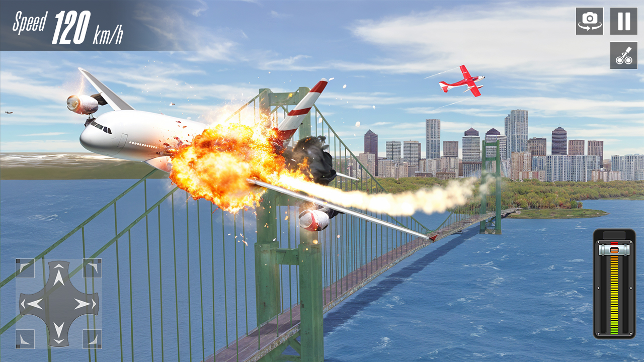 Kies een vliegtuig uit verschillende soorten vliegtuigen en geniet van een echte vliegtuigcrash-simulatorspelervaring met een vliegtuigongeluk in verschillende situaties. In tegenstelling tot andere vliegtuigspellen 2025, waarbij je missies moet doen in de offline vliegtuigspellen 2025, zul je hier veel plezier beleven aan vliegtuigongelukken en genieten van de vernietiging zonder je zorgen te hoeven maken dat niemand gewond raakt. Crash het vliegtuig op duizend verschillende manieren en geniet ervan om het in duizend verschillende delen te zien breken, zoals een crashsimulatorspel 2025.