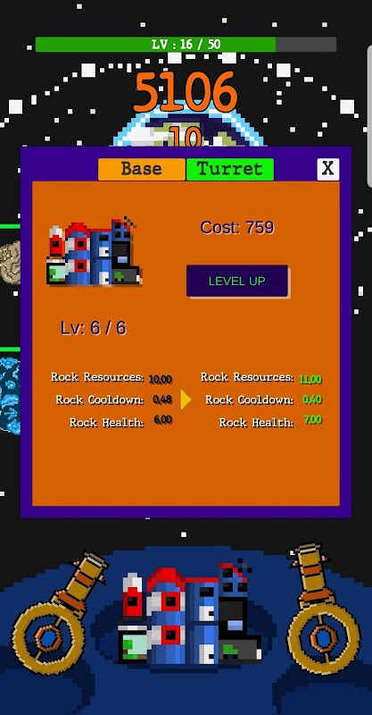 - Upgrade je basis en torentjes om sneller bronnen te verzamelen en meer kogels te schieten.