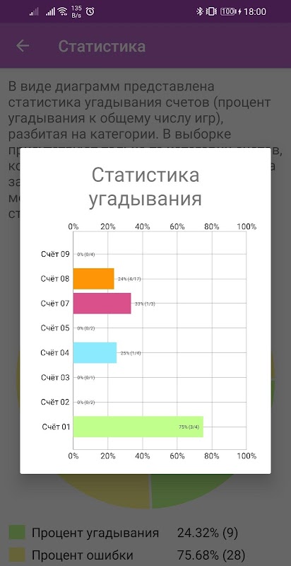 De applicatie berekent en houdt statistieken bij over het raden van elk account. Raadstatistieken kunnen worden bekeken in de vorm van diagrammen via het hoofdmenu.