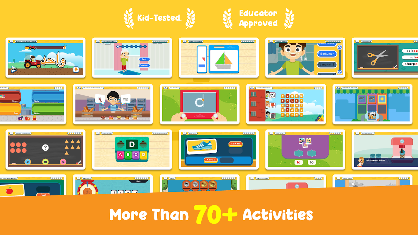 Er zijn 5 onderwerpen in deze app, namelijk Bahasa Melayu, Engels, wiskunde, wetenschap en islamitisch onderwijs en elk onderwerp heeft 3 niveaus, beginnend met de gemakkelijkste tot de moeilijkste, afhankelijk van het vermogen en de prestaties van het kind.