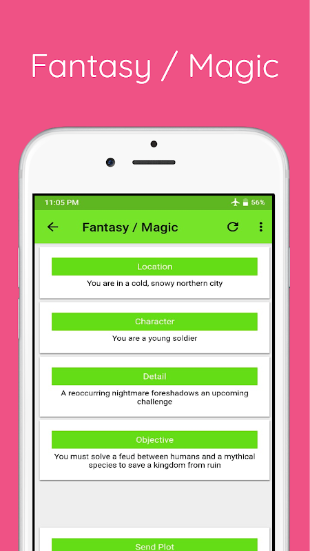Deze gratis Plot Generator - Random Story-app biedt schrijfaanwijzingen en willekeurige plots om u op weg te helpen met creatief schrijven en verhalen vertellen.