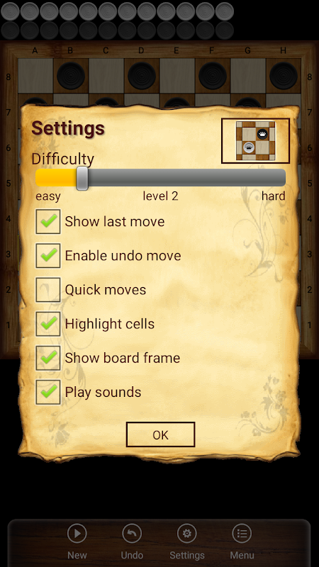 De applicatie bevat een krachtig spelalgoritme en een vriendelijke klassieke interface. Daag je strategische vaardigheden uit met dit ontspannende spel. Nu kunt u waar u ook bent genieten van het damspel, rechtstreeks vanaf uw smartphone.