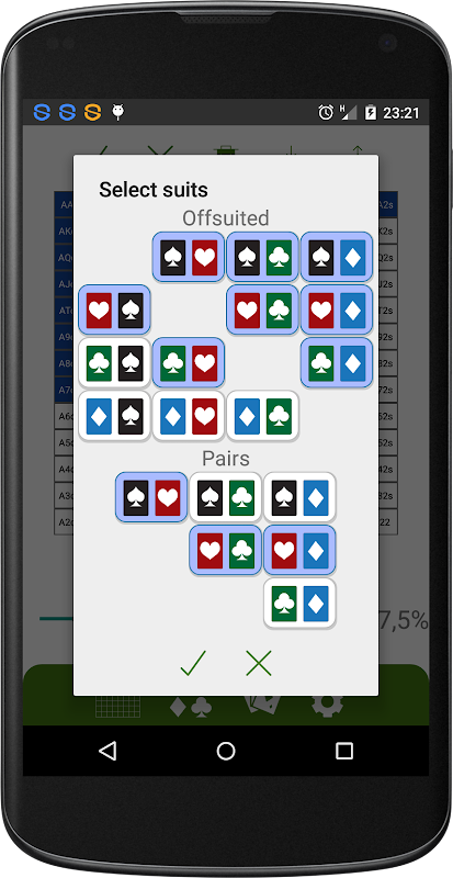 Quickly and easily you compute and analyze the pot odds in poker game Texas Hold'em.