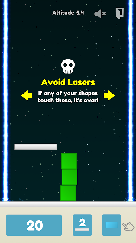 📌 Avoid the death lasers! If any of your shapes touch a laser, they will explode and destroy the tower.