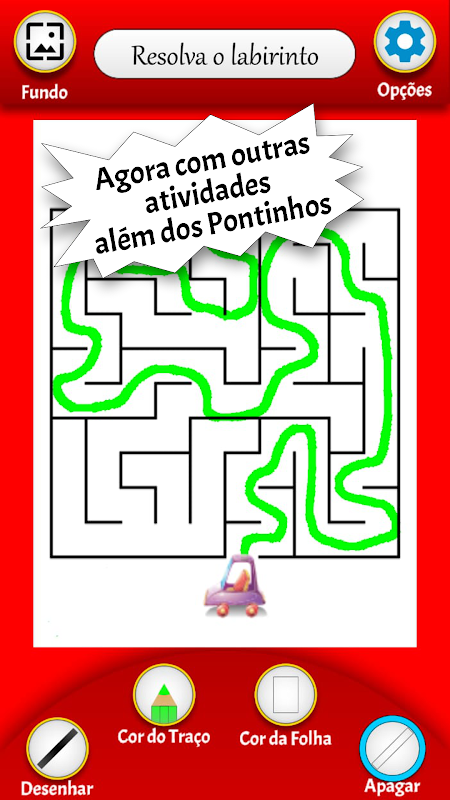 In dit connect-the-dots-spel is het leuk om letters, cijfers, geometrische vormen en dieren te overtrekken en in te kleuren. Pontinhos heeft meer dan 300 tekeningen, verdeeld in acht categorieën, zodat u ze thuis of op school samen met uw kinderen kunt kleuren.
