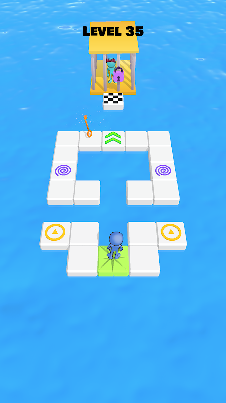 Walk through the ice blocks to collect the key and open the door to meet your loved one. It's not as easy as you may think it is. There is no going back. Once you have crossed a block, it's carcked and if you try to step on it again, it gets broken and you get drowned in water. Do not forget to collect the key.