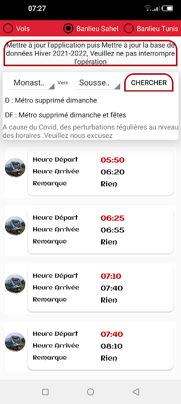 - sahel metro, tunis metro: dienstregeling van de suburbane sahel metro en tunis metro