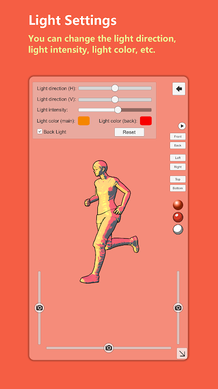 Je kunt eenvoudig een pose laden uit de posebibliotheek. En je kunt ook veel poses krijgen van de animaties. Op dit moment heeft deze app 145 animaties, 100+ lichaamshoudingen en 30 handhoudingen.
