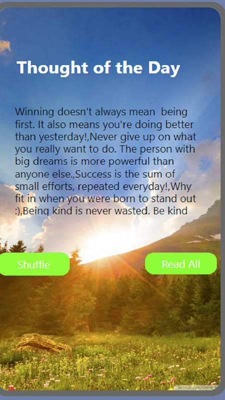 De app Help mensen door ze 's morgens of' s avonds positieve gedachten te vertellen. Het verspreidt een positief woord terwijl je er wat muziek mee speelt.