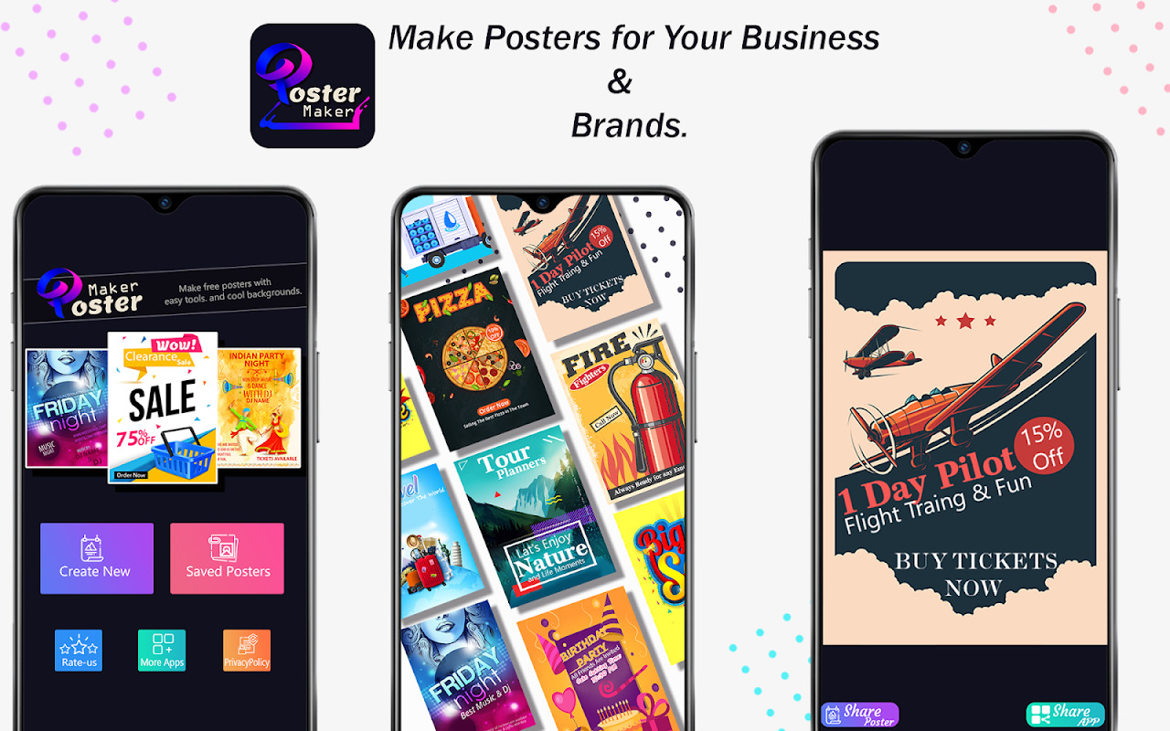 Wil je promotionele posters, zakelijke posters, flyers, posters, uitnodigingen of posts op sociale media maken, dan is deze postermaker, flyermaker de beste app voor jou.