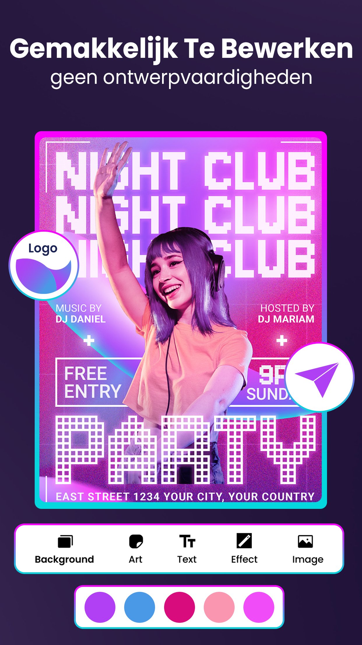 Maak uw eigen promotieposters, kondig aanbiedingen aan en pas omslagfoto's in een handomdraai aan met een reeks verbluffende achtergronden, lettertypen, stickers, illustraties, texturen en effecten. Grijp moeiteloos de aandacht die u verdient!