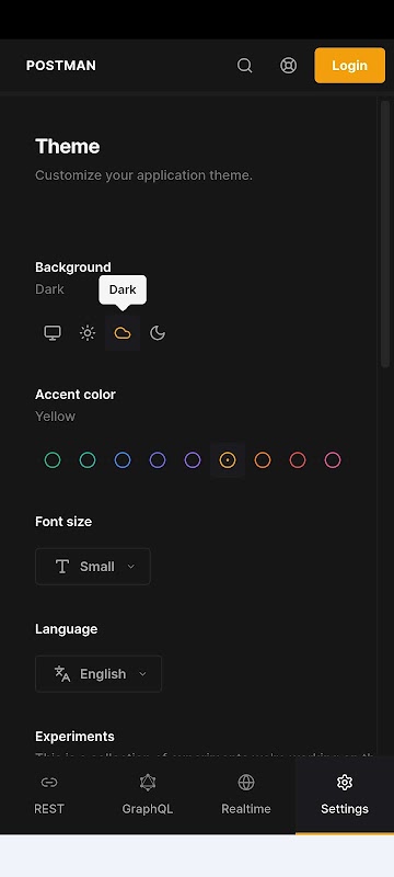 🎨 Thema's: pas het uiterlijk van de POSTMAN API aan met een verscheidenheid aan thema's en accentkleuren. De app bevat ook een afleidingsvrije "Zen-modus" en de mogelijkheid om uw aangepaste thema's te synchroniseren met cloud- of lokale opslag.
