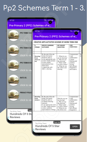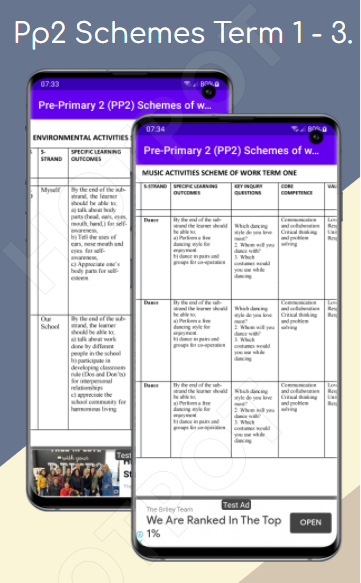 Deze applicatie Pre-primary 2 CBC (Competency Based Curriculum)onderwerpen werkschema's voor Term I, II en III. De applicatie is ingesteld om docenten en studenten te helpen projecteren over hoe ze het onderwijs op verschillende niveaus en tijdstippen zullen organiseren. De applicatie helpt leraren ook bij het plannen van hun lesplannen en het onderwijzen van de benodigde inhoud zoals begeleid door de curriculumontwikkelaars.