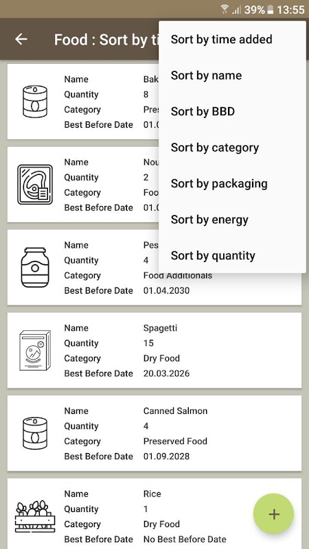 Artikelen van alle voorraden met een korte houdbaarheid krijgen prioriteit en triggeren cyclische meldingen, zodat ze tijdig kunnen worden gebruikt en vervangen. Alle opgeslagen voorraden worden gebruikt om te berekenen hoe lang uw voorraad eten en drinken moet meegaan in geval van nood.
