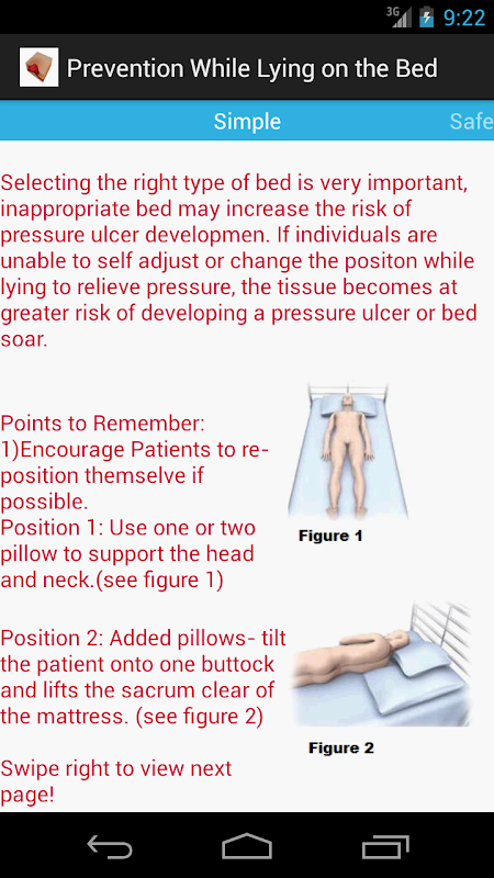 The sores, known as pressure ulcers, cause hundreds of deaths a year. Most victims are elderly or long-term patients who need help to move. We can reduce the risk of pressure ulcer by using this pressure ulcer guide. Therefore, join us by using this App to save patient and elderly people from sores. Keep in mind that prevention is cheaper than the treatment.