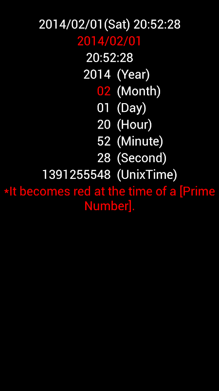 When the date, time, etc. are prime numbers, it is only an application which displays the number red.