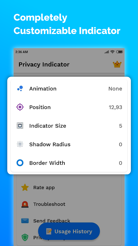 Privacy Indicator biedt ook een breed scala aan aanpassingsopties om de indicatorstip aan te passen en te personaliseren zoals jij dat wilt ⚙️