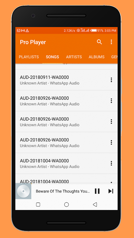 Music player with elegant design and simple interface . Pro Player lets you manage all your music files quickly and easily. Supports the same audio formats as the stock music player . Easily browse and play music songs by genres , albums , artists , songs.