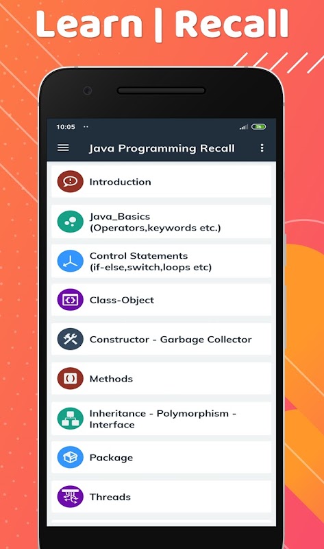 Build your programming skills in the Java Programming language with the Java Programming Recall App.