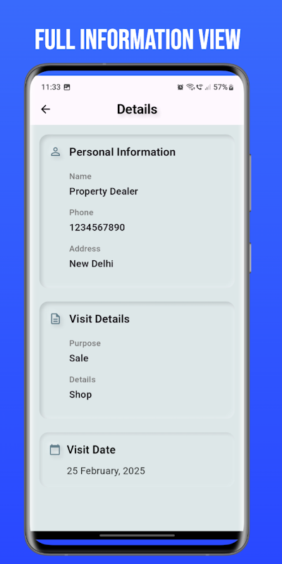 Property Manager is een uitgebreide app voor klantbeheer, ontworpen voor vastgoeddealers die een eenvoudige maar krachtige tool nodig hebben om hun klantgegevens te ordenen. Bewaar en beheer eenvoudig klantinformatie, waaronder naam, telefoonnummer, adres, doel van het onroerend goed en gedetailleerde eigendomsspecificaties, allemaal veilig opgeslagen op uw apparaat.