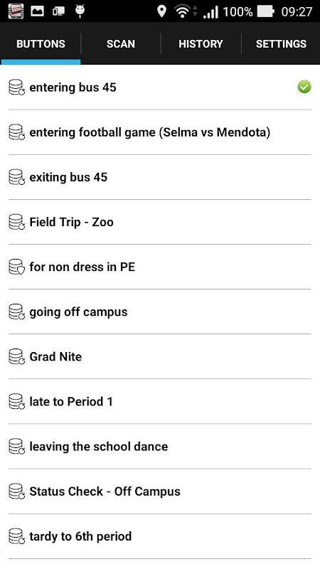 ProScanner 2.0 is een smartphone-gebaseerde app die de identiteitskaarten van studenten kan scannen om hun dagelijkse activiteiten bij te houden, hen van beloningen en gevolgen te voorzien. De ID-kaart die je student heeft, moet een streepjescode hebben (bijvoorbeeld Code_39, Code_128, Ean_8, QR_ Code, etc.). Wanneer u klaar bent met scannen, klikt u eenvoudigweg op een knop in uw Administrator-account in drssica.com om alle gegevens te downloaden (tijdstudie is gescand, wie deze heeft gescand, enz.) Naar een Excel-spreadsheet (CSV-indeling). Stel bijvoorbeeld dat uw lustrummedewerker alle studenten scant die de lunchdetentie dienden. Aan het einde van de lunchdetentie kan de beheerder een CSV-spreadsheet downloaden met wie aanwezig was, hoe laat de identiteitskaart was gescand en wie de studenten-ID-kaart heeft gescand. Het bijhouden van nauwkeurige gegevens is eenvoudig met ProScanner. Elke gebruiker (medewerker) ontvangt een gebruikersnaam en wachtwoord. U bepaalt hoeveel gebruikers u nodig heeft; het kan variëren van 1 tot 1000+ gebruikers. Kunnen studenten deze app gebruiken? Nee, omdat ze geen inloggegevens hebben. Hoeveel kost de app? Het is gratis. Download de app nu, zodat u deze app op uw Android-apparaat of op uw tablet kunt gebruiken. Wat dacht je van als de student geen identiteitskaart heeft? Onze app heeft een 'Student Look Up' waarmee de medewerker op voornaam, achternaam of ID-nummer kan zoeken. Houd er rekening mee dat wanneer een ID wordt gescand, het scherm rood, groen, bruin of geel wordt weergegeven, afhankelijk van de kleur die door u is toegewezen (de beheerder). Bijvoorbeeld, als u de app gebruikt voor studenten om voor de lunch van de campus af te gaan, wanneer de identiteitskaart van de student wordt gescand, wordt deze groen weergegeven (waardoor de student van de campus kan gaan), rood (student heeft niet het voorrecht om buiten de campus), of Brown (student heeft lunchdetentie of zaterdagschool). Het duurt letterlijk een seconde tot twee seconden om elke ID-kaart te scannen. Een middelbare school in Visalia, CA scant ongeveer 400 - 500 studenten in ongeveer 6 tot 7 minuten met behulp van 8 personeelsleden. Dit programma is gemaakt om studenten verantwoordelijk te houden voor hun acties en om uw campus veilig te houden.