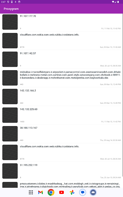 Met slechts een paar tikken biedt onze app u een samengestelde lijst met de beste proxy's, waardoor u niet langer handmatig naar betrouwbare verbindingen hoeft te zoeken. Elke vermelde proxy wordt uitvoerig getest en gesorteerd om optimale prestaties te garanderen.
