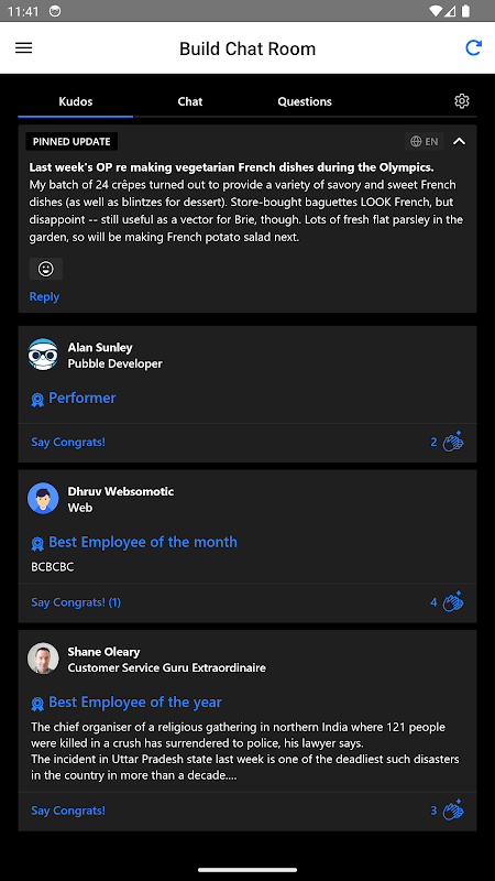 Neem deel aan virtuele evenementen met live polls, chat, reacties en updates van hosts.