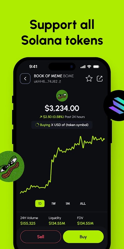 Mis nooit meer de laatste tokenprijsbewegingen. Met in-app-analyses kunt u de waarde van uw activa snel en inzichtelijk beoordelen. U kunt elk token op Solana opzoeken met het contractadres.