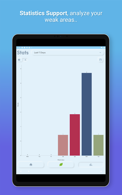 Deze functie laat je weten welke woorden zijn geblokkeerd en wanneer. Het geeft u een grafisch overzicht van uw lokaal opgeslagen gegevens. U kunt gegevens van elke datum controleren en uw zwakke punten analyseren.