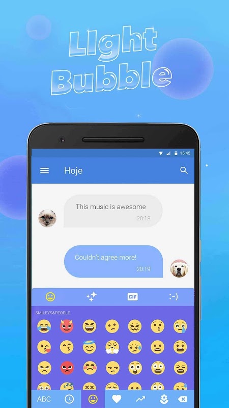 -Purple Bubble Emoji Keyboard only works with Facemoji Keyboard + GIFS installed on your phone. If you don’t have it, you will be automatically led to the Google Play download link,then download and choose Facemoji Keyboard + GIFS as your default keyboard.