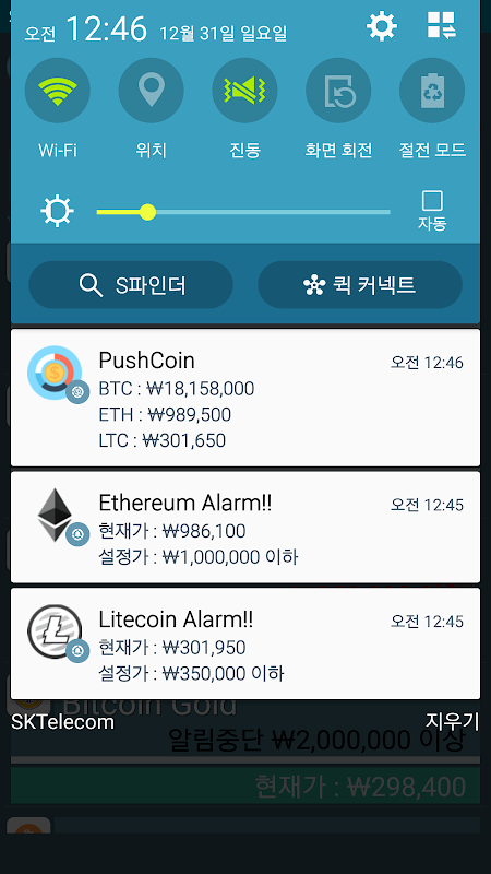 - 알람을 등록하면 등록한 가상화폐의 실시간 데이터를 확인할수 있습니다.