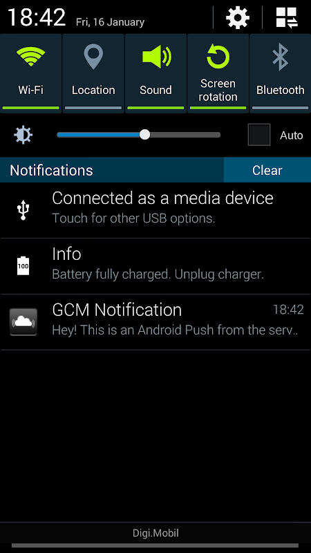 De Android-toestel moet worden aangesloten op internet naar push-notificaties ontvangen, ofc.