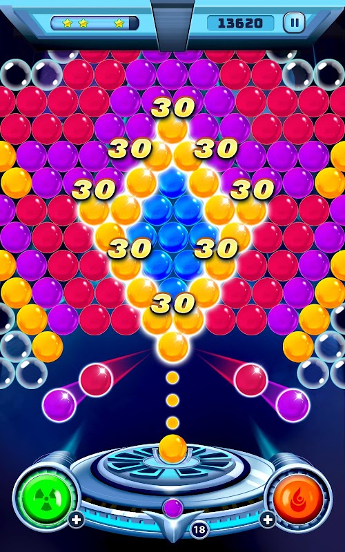 Doe mee met het ongelooflijke avontuur in de ruimte en geniet van coole graphics, effecten en verslavende gameplay. Je kunt bubbels gratis wisselen - tik op je bubbel om de kleur te wijzigen. Bekijk welke kleur je nu krijgt en werk een strategie uit om alle bubbels te breken met minder foto's.