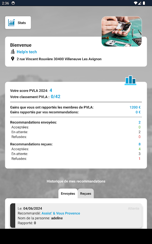 Deze applicatie is bedoeld om aanbevelingen te sturen tussen leden van de PVLA-businessclub, om de aanbevelingen op te volgen die worden gevalideerd, in behandeling zijn of worden geweigerd.