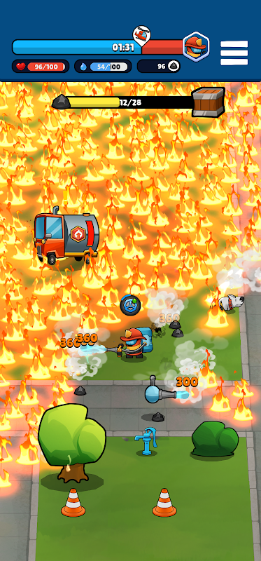 - Dynamische gameplay: branden verspreiden zich over de kaart en worden in de loop van de tijd heviger, terwijl vijanden spawnen om je inspanningen uit te dagen.