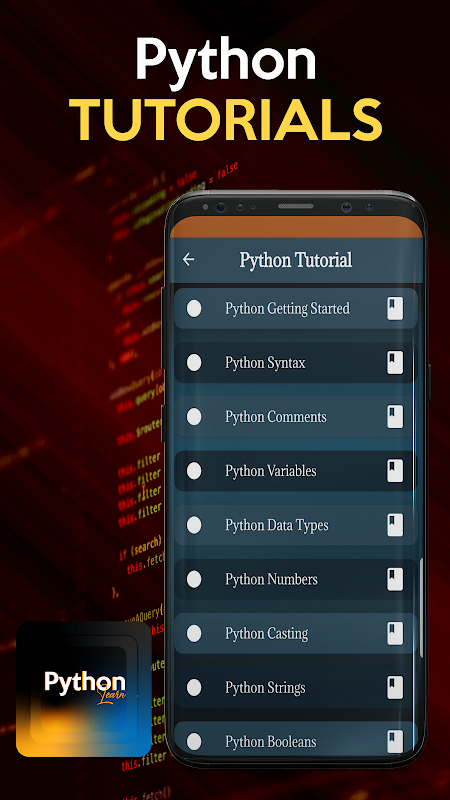 Python leren is een app die je moet hebben voor alle programmeerstudenten of studenten informatica om Python-programmering te leren wanneer ze maar willen. Of je je nu voorbereidt op een Python-interview of een examen waarvoor kennis van Python-programmering vereist is, je kunt geweldige inhoud vinden in deze programmeer-leerapp.
