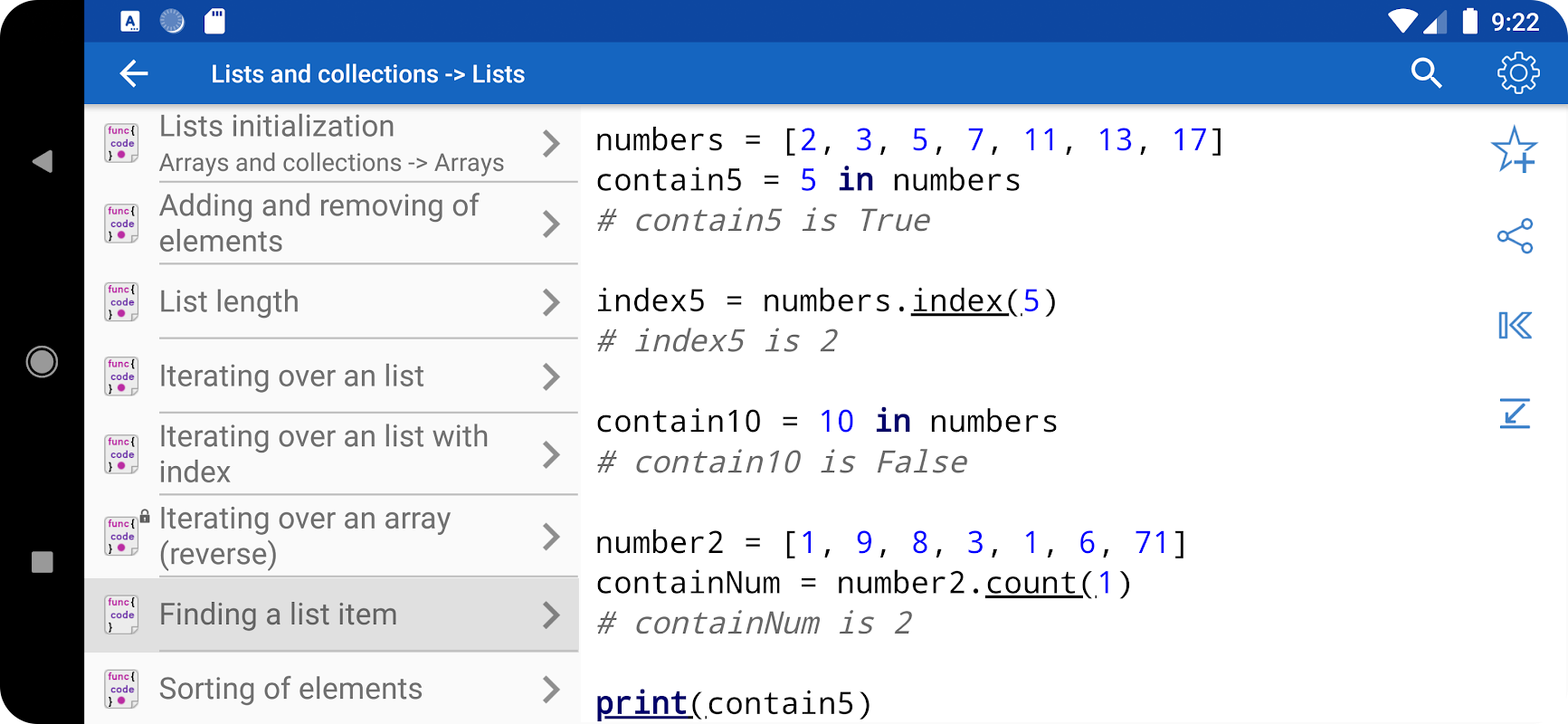 • Snel zoeken naar het juiste voorbeeld op code of op onderwerpnaam.